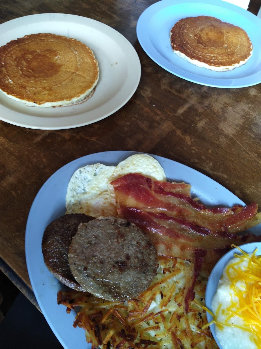 Absolutely Loved this place! We stopped in on our way to a music festival in Danville, VA. My friend wanted to stop because the name reminded him of an old South Park episode - I just wanted the local diner experience. We were not disappointed. We stopped in am hour before close (2pm, I think), and were treated like Family. Our server was so wonderful, answering questions (Ex: What's the difference between a pancake and a griddle cake? Answer: Their griddle cake is made from a grits patty, so it ends up with a slightly crispy outer layer texture and the almost silky interior of warm grits. I ordered it and it blew my freakin' mind!), and when I told her this was my first experience with grits, she brought me a small bowl of buttery grits to try because theirs are so good. She Was RIGHT! Oh Mama, changed my life. I finally understand the obsession with grits!! I even mixed in a littler apple butter (which they just HAVE Sitting on the table!) toward the end, and my heart hurt a little when they were gone. The sweet tea is a strong black tea, and the prices were great. We stayed full for 5 or 6 hours, even while rocking out in the Blue Ridge mountains. Please come enjoy a meal here and keep this genuine gem open!!
